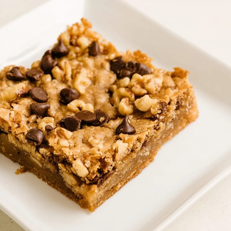 The beauty of blondies is how forgiving they are with substitutions. Swap the walnuts for macadamia nuts or pecans, or leave them out entirely if nuts aren't your thing. For something richer, use dark chocolate chips or even white chocolate—the brown sugar base works with all of them. If you want extra decadence, drizzle cooled bars with melted dark or white chocolate for an over-the-top finish.