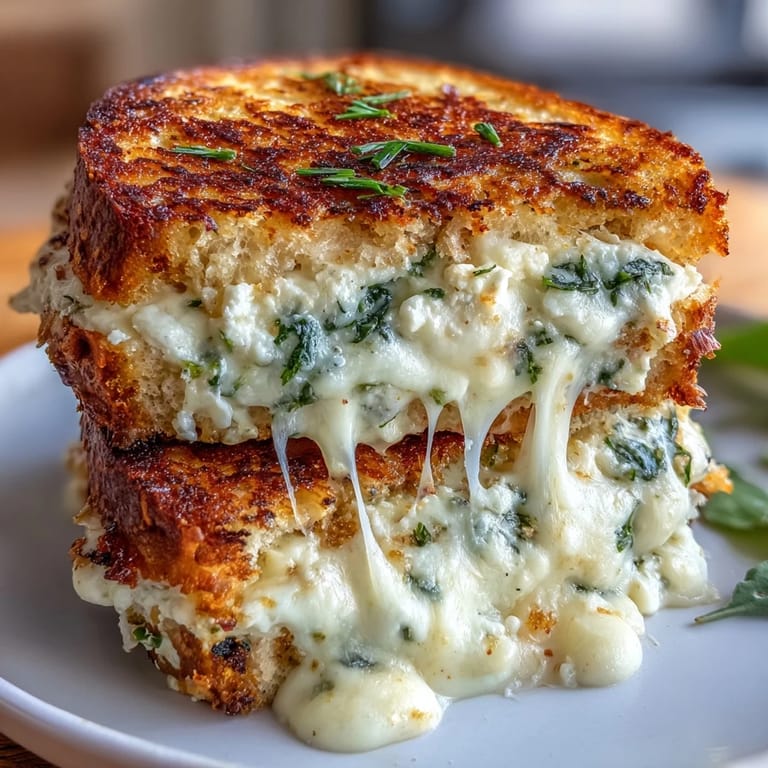 Pin it The smell of garlic hitting hot oil always pulls me straight into the moment. I started making this stuffed grilled cheese on a rainy Tuesday when I had spinach about to wilt and feta left over from a salad. I figured melting cheese fixes most things, and I was right. The bread crisped up perfectly, the filling stayed put, and I ate both sandwiches standing at the counter.
