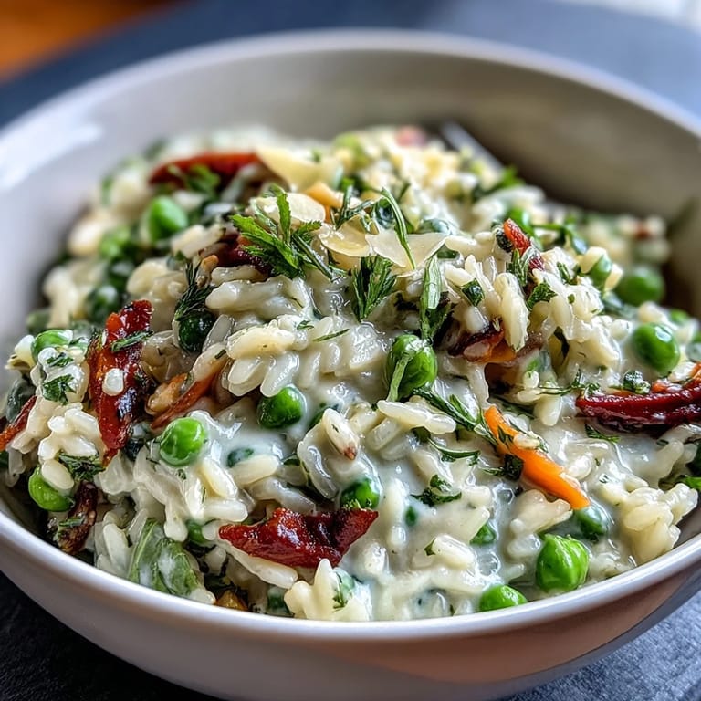 Pin it Whether you're hosting an elegant spring dinner party or simply treating yourself to a comforting weeknight meal, this Pea and Mint Risotto with Parmesan delivers on every level. The combination of creamy Arborio rice, sweet peas, and refreshing mint creates a harmony of flavors that truly celebrates the season. With medium difficulty and just 45 minutes of total time, it's an achievable yet impressive dish that will have your guests asking for the recipe. Serve it fresh from the pot, garnished generously, and watch as this vibrant green risotto becomes the star of your table.