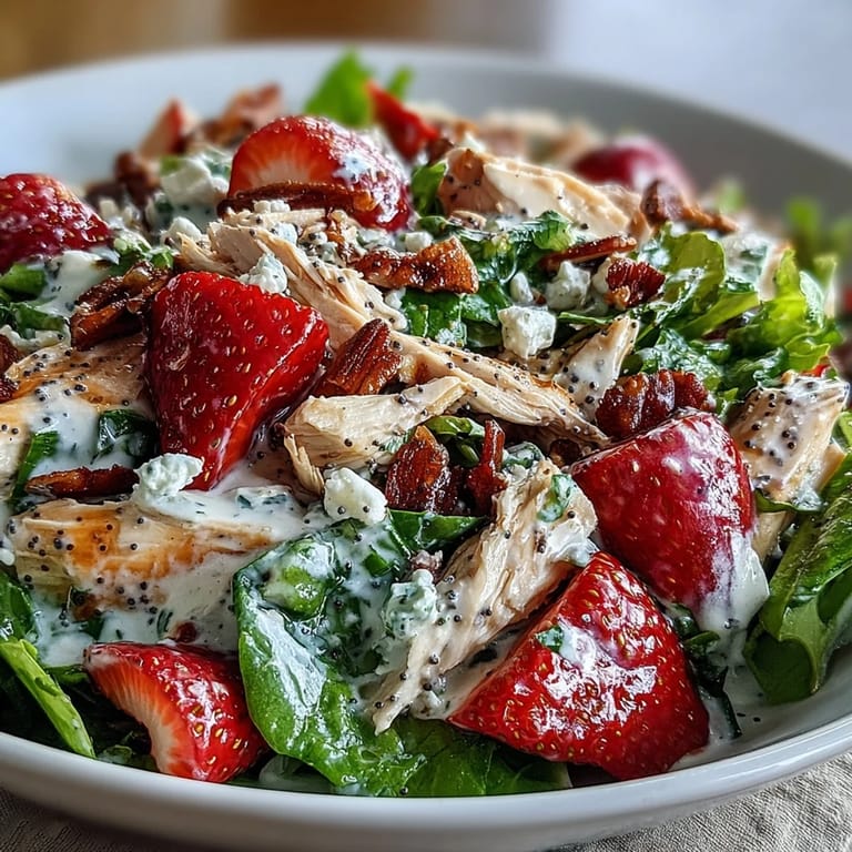 Pin it I threw this together on a Tuesday afternoon when the kitchen was too hot for anything heavy. The strawberries were sitting on the counter, almost too ripe, and I had leftover chicken from the night before that needed a purpose. What started as refrigerator rummaging turned into something I now make whenever the weather gets warm and I need lunch to feel like less of a chore. It's bright, it's easy, and it doesn't make you want to nap afterward.