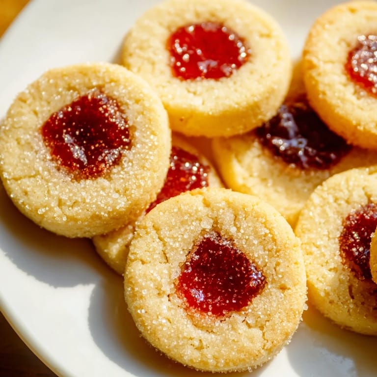 Pin it My grandmother used to make these thumbprint cookies every December, and I'd watch her press her thumb into each ball of dough with the kind of practiced confidence that only comes from doing something a thousand times. Years later, when I finally learned the recipe, I realized those small indentations were her quiet signature on every batch, a tiny moment of intention before the jam went in. There's something almost meditative about making these now, and I think that's why they've become my go-to when I need to feel grounded in the kitchen.
