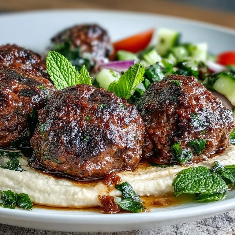 Pin it One evening I served this dish outside on the patio as the sun was setting, and the smell of the spiced meatballs mixed with the cool evening air and the faint scent of mint from the salad. My partner reached over, scooped a meatball through the hummus, and said it tasted like something we would order at a restaurant but better because it felt personal and made with care. That moment reminded me why I love cooking, not for perfection, but for the simple pleasure of putting good things on a plate and sharing them with people who matter.